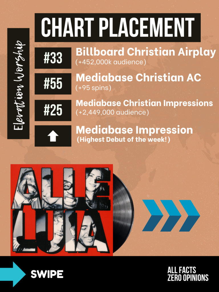 Elevation Worship is the worship ministry of Elevation Church, a multi-site church based in Charlotte, NC, led by Pastor Steven Furtick. They have released 17 albums, which include RIAA Double Platinum-certified songs, “Jireh,” “O Come To The Altar,””Do It Again,” “Praise,” and “The Blessing.”As well as RIAA Platinum-certified songs:” “Graves Into Gardens,” “Here As In Heaven,” “See A Victory,” “Trust In God,” “LION,” and “Same God” .The group also has 10 RIAA Gold-certified songs and two Gold-certified albums. Elevation Worship is passionate about producing songs for the local church that help others connect to God. Their primary goal is to create an atmosphere of worship that allows people to encounter Jesus personally. During a special recording for the church in September 2025, Elevation Worship recorded new songs that will debut on their album releasing in February 2026 entitled, SO BE IT. Additionally, they have earned five No.1 radio singles: “Graves Into Gardens,” “RATTLE!,” “Same God,” “Trust In God,” and “Praise.” Elevation Worship has won a GRAMMY Award, five Billboard Music Awards, nine GMA Dove Awards, and a K-LOVE Fan Award. They have also received nominations for the American Music Awards and BET Awards. The worship group’s single, “I Know A Name” released in February of 2025, has already been in the top 10 AC Billboard and Christian Media-based charts and the top 3 on the Audience and Airplay Christian Billboard charts. They have recently released two new singles, “Jesus Be The Name” with Tiffany Hudson, and “God I’m Just Grateful” with Chandler More. Both singles can be streamed on all streaming platforms.