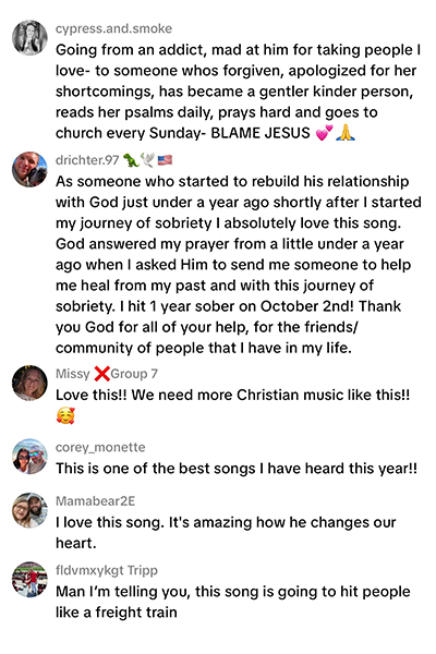 “Blame Jesus is my story in a song. I’m not the same man I used to be, and the only explanation is Him. Every change in my life, every step into who I’m becoming—it’s all because of Jesus. He’s the reason I have the gift of music at all—the words to write, the voice to sing, and the breath in my lungs come from Him.” – Drew Parker