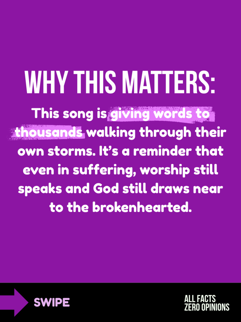 This song was born out of a cry to God after my dad was diagnosed with ALS and quickly went downhill in his battle with the disease before passing. I was easily going through the worst season of my life; I felt angry and confused and a lot of times my prayer time consisted of nothing more than, “God, I need you”. I needed him to show up when I was feeling numb, when I felt alone, and when I felt hopeless. This song ministered to me and my family through that season and provided words to emotion we couldn’t always convey. My prayer is that it provides hope for anyone who is listening in the midst of their hardship and suffering and reminds them that God draws near to the broken-hearted.
