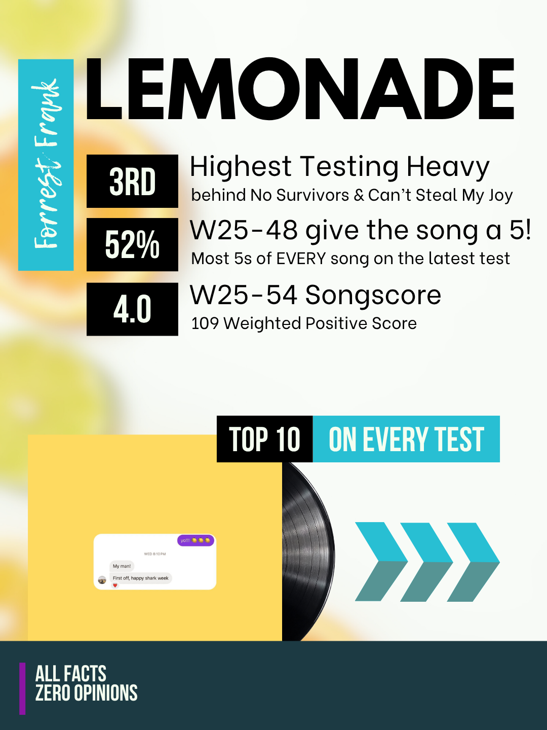 CHILD OF GOD soared to stratospheric heights upon arrival, capturing his first GRAMMY nomination, a Billboard Music Award (BBMA) finalist spot, a #1 on the iTunes Overall Top Albums Chart, and within a few months’ time, tallied over 1 billion global streams. Given the runaway success, Billboard named him the #1 Top New Christian Artist of 2023, a 2024 BBMA finalist for Top Christian Artist. Concurrently, the signature “GOOD DAY” became a TOP 5 Christian radio hit, also named a BBMA finalist and won a DOVE Award for Pop/Contemporary Recorded Song of the Year, with Frank winning for “New Artist of the Year.”